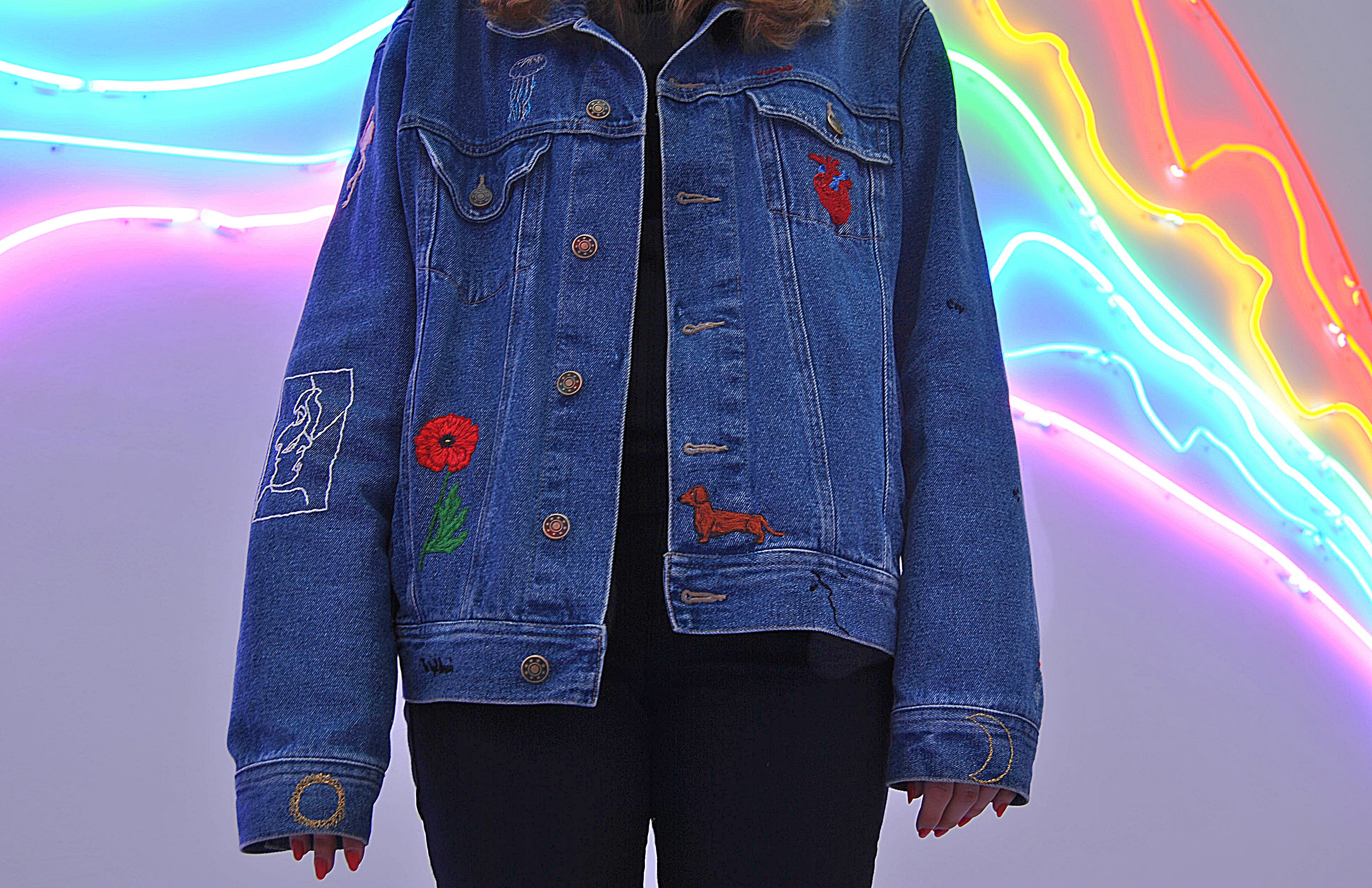 Aby oszczędzić trochę naszą ranną planetę, głównie wykonuję swoje prace na używanych ubraniach. Jeżeli ktoś zamawia u mnie wzór, proszę, aby przysłał także swoje ubranie, na którym praca ma być wykonana. To naprawdę świetny sposób na danie ubraniom „drugiego życia”, a także zreparowanie lekko zniszczonych. Zakrywając haftem przetarcia i dziury możemy uzyskać nowy, niepowtarzalny efekt. W imię sustainable fashion i zero waste powinniśmy pobudzać swoją kreatywność przerabiając ciuchy i tworzyć je w nowym stylu.