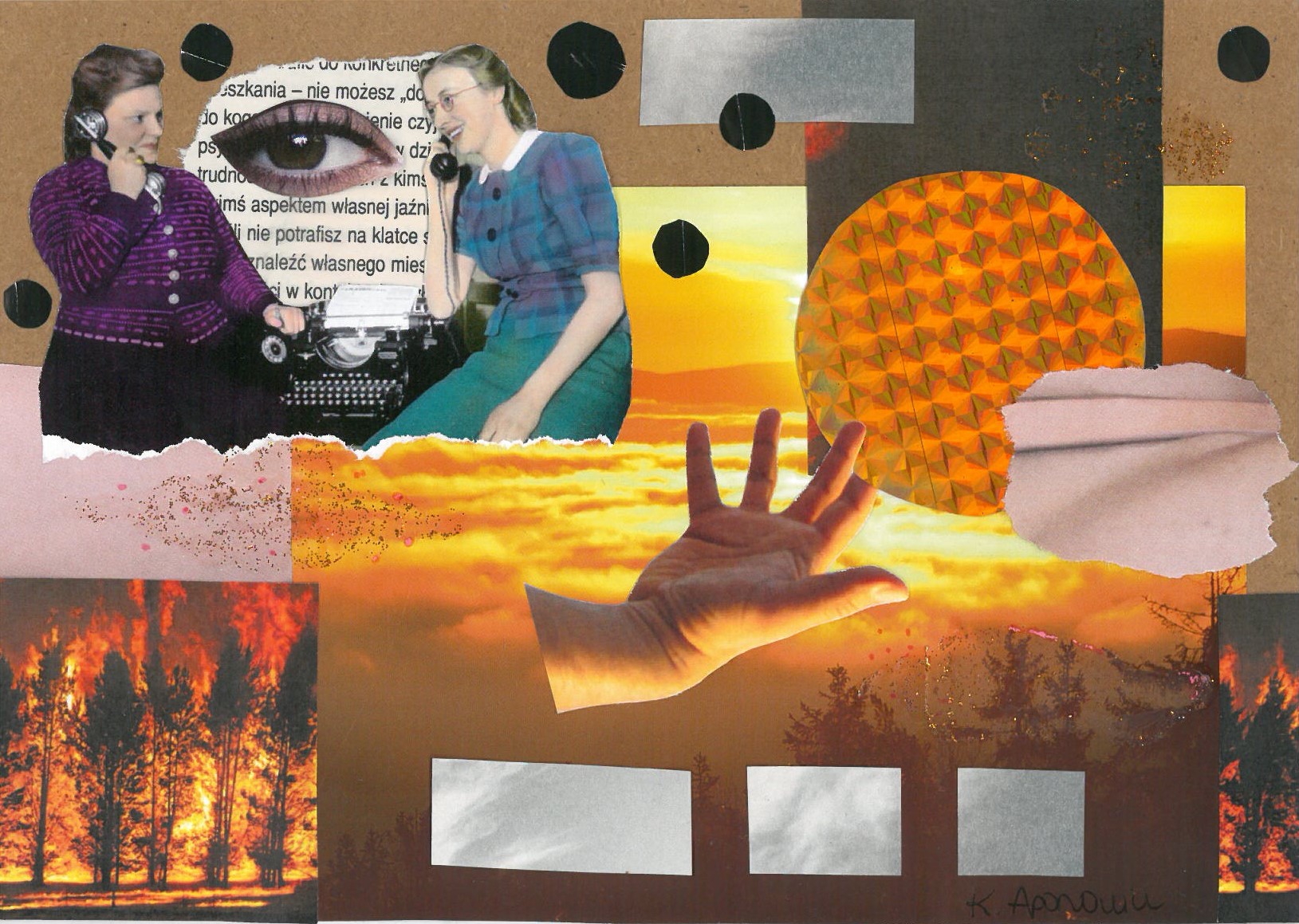 Autorka ilustracji: Katarzyna Zuzanna Aponowicz (19) – studentka Uniwersytetu w Białymstoku na kierunku filologia polska. Interesuje się głównie literaturą, poezją, psychologią i kuchnią wegetariańską. W wolnych chwilach ubiera części swojej osoby, innych ludzi lub tematy ważne społecznie w kolaże.