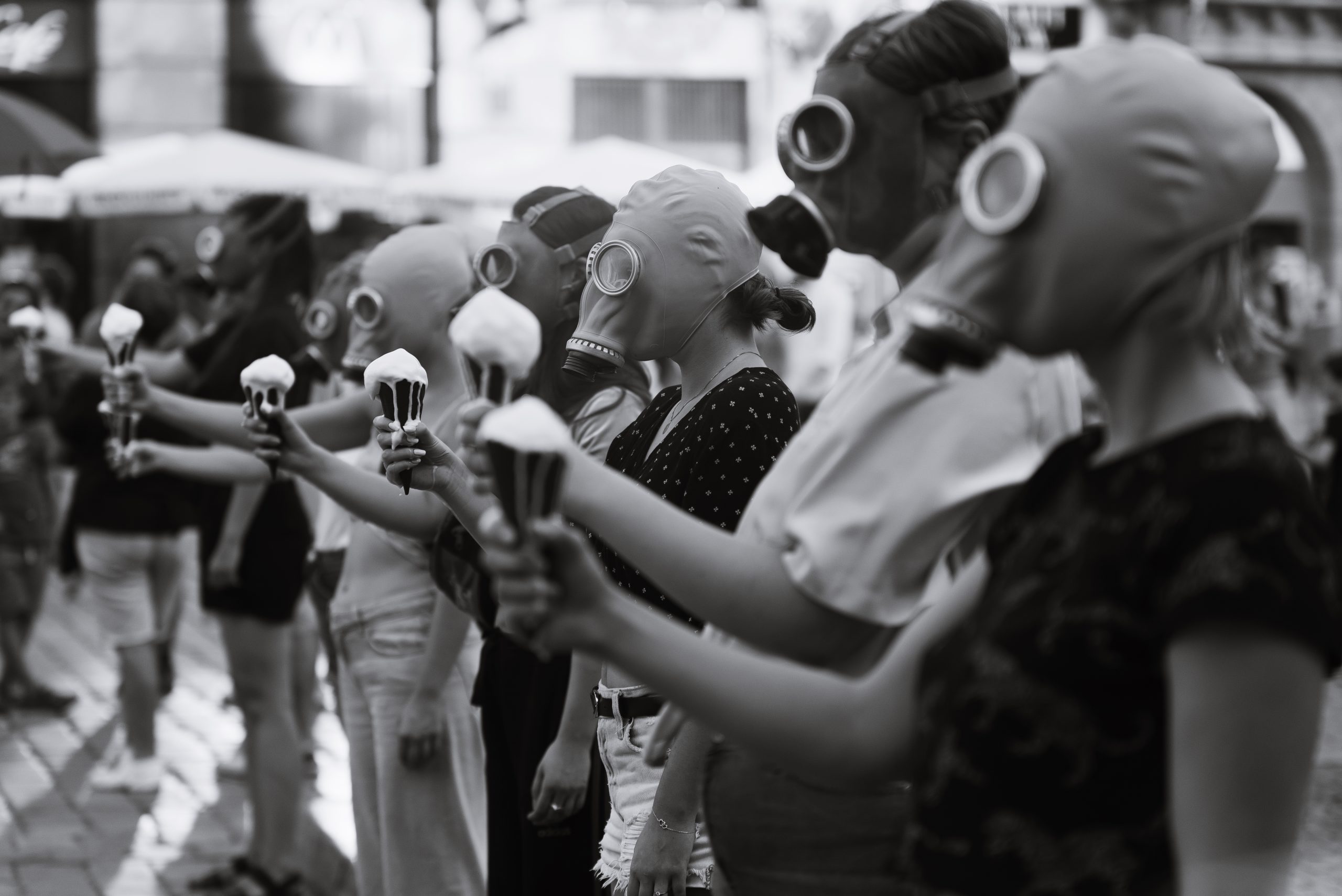 Pierwsza akcja zakończyła się performansem w maskach gazowych, z lodami. Czy zdradzicie, jak doszło do tego pomysłu?