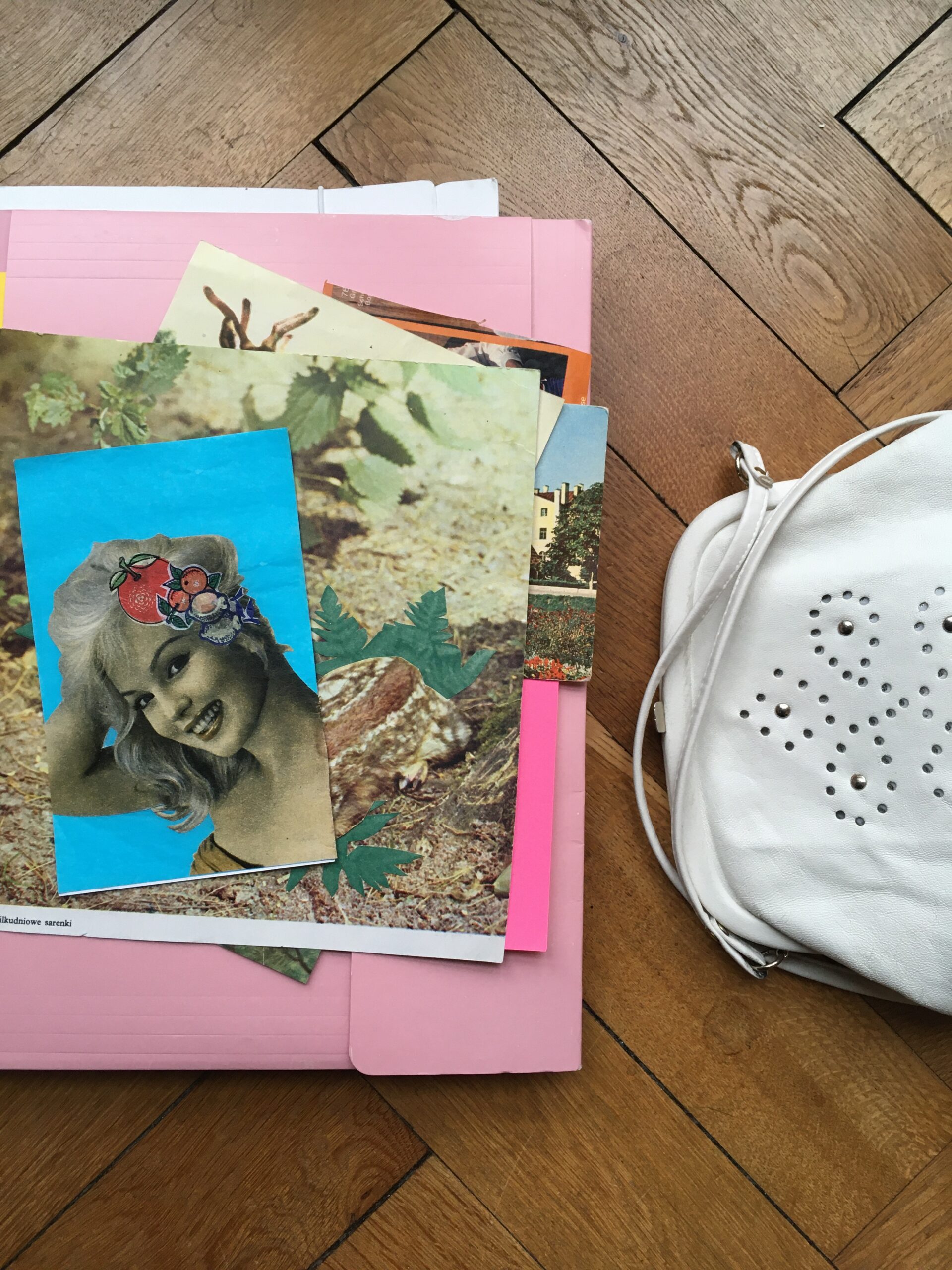 Technika – tradycyjna, całkowicie manualna, wytnij–wklej. Materiały – każde, które dadzą się nakleić/naszyć/odbić na papierze. Najlepiej, jeśli będą vintage’owe – o estetyce rzadko spotykanej we współczesnej grafice. Sprawdzą się stare modowe czasopisma, wyszperane na pchlim targu klasery pełne retro znaczków, ilustracje z książek dla dzieci, ryciny z albumu przyrodniczego. Zasuszone kwiaty, papierki po cukierkach, nagłówki z gazet, pocztówki, rodzinne fotografie. W tym barszczu grzybów nigdy nie jest za dużo, a papier z wdzięcznością przyjmie wszystko – pomieszane kolory, style i techniki. Wyszło dziwnie, śmiesznie, trochę erotycznie? A może upiornie i makabrycznie? Świetnie. To znaczy, że kolaż spełnił swoją funkcję – opowiedział intrygującą historię.