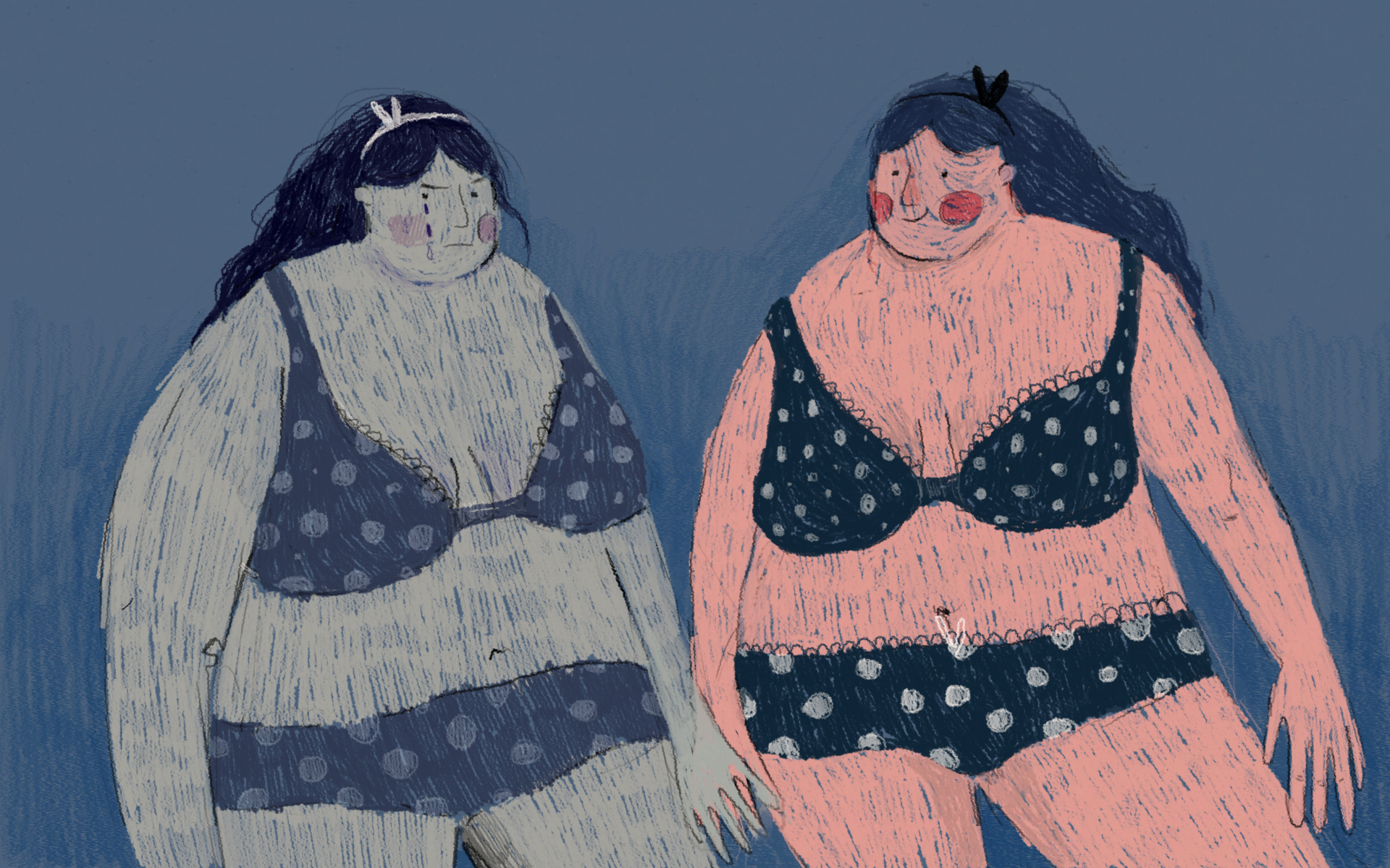 Był też czas, kiedy bardzo nie lubiłam mojego małego biustu. Podczas gdy moje koleżanki miały już „czym oddychać” u mnie wciąż nic się nie działo. Czułam się przez to gorsza. Tym bardziej, że mój brzuch, pupa i biodra rosły w szalonym tempie, które pozostawiało po sobie rozstęp. Do dziś znajduję je na swoim ciele. Czułam się nieforemna i nieproporcjonalna. Pozbawiona kobiecości. A i rozstępy. No właśnie. Dziś się ich nie wstydzę, ale ten moment, kiedy pierwszy raz zobaczyłam krwistoczerwone szramy na moich udach, zapamiętam na zawsze. Poczułam ogromne obrzydzenie do mojego ciała. Nie rozumiałam tego, co się stało i dlaczego. Widziałam tylko rysy na mojej bladej skórze, które zaorały ją wzdłuż i wszerz, pozostawiając po sobie blizny na całe życie.