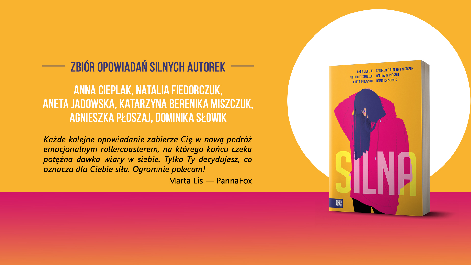 Silna to zbiór opowiadań, w którym sześć polskich autorek – Anna Cieplak, Natalia Fiedorczuk, Aneta Jadowska, Katarzyna Berenika Miszczuk, Agnieszka Płoszaj i Dominika Słowik – w krótkich formach pokazało, co dla współczesnej nastolatki może oznaczać siła. W każdym z opowiadań możemy towarzyszyć młodej kobiecie, która w jakiś sposób odkrywa i manifestuje swoją siłę.