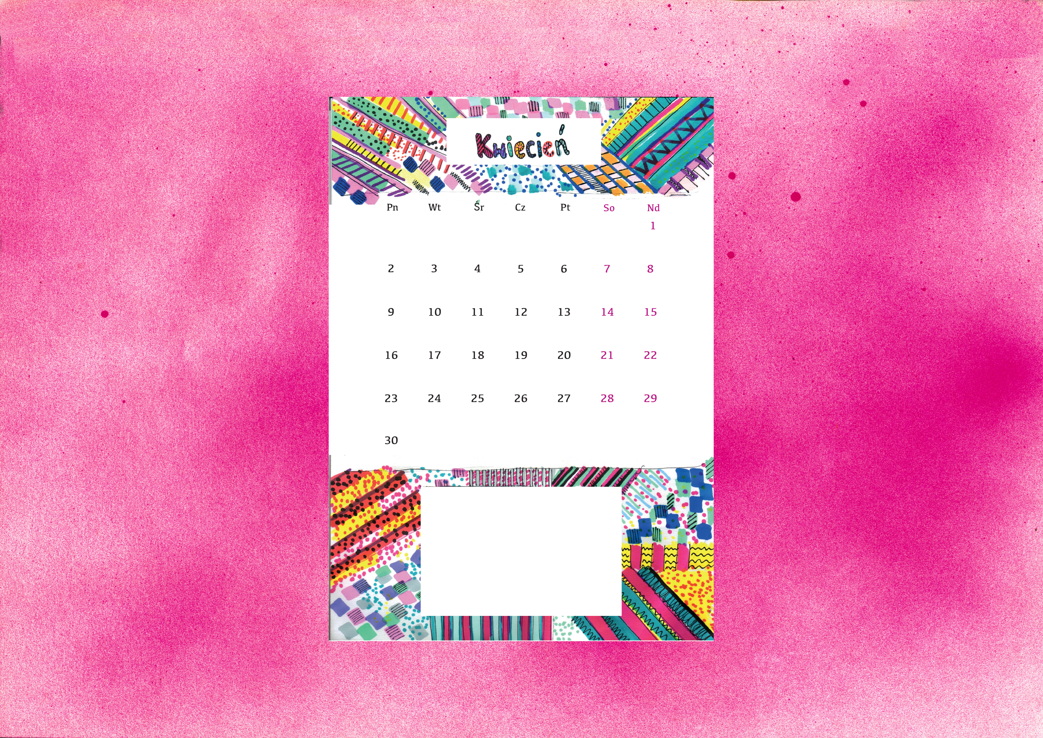 Wiosenny kalendarz od Michaliny! Wersja w kolorze w 2 opcjach dostępna tutaj